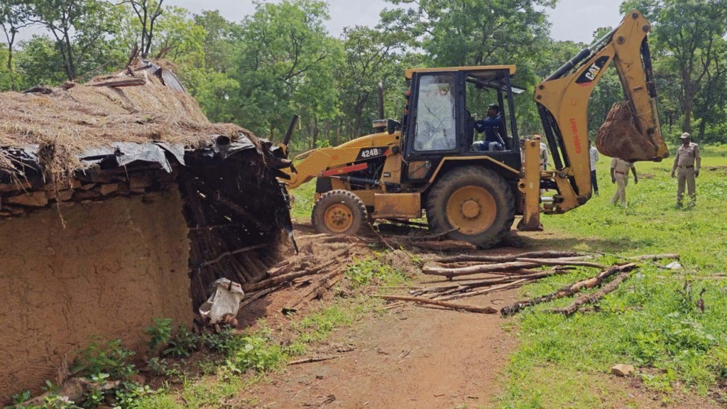 जंगल की ज़मीन पर वर्षों से कब्जा जमाए बैठे अतिक्रमणकारियों के खिलाफ प्रशासन ने सख्त कार्रवाई करते हुए 71 एकड़ से ज्यादा सरकारी ज़मीन को अतिक्रमण मुक्त करा लिया। इस अभियान के तहत करीब 30 अवैध झोपड़ियों पर बुलडोजर चलाया गया।