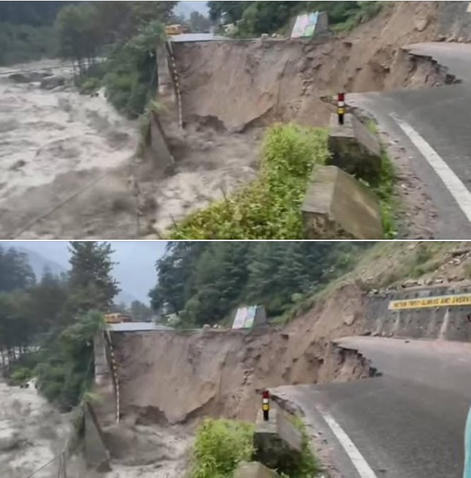 जानकारी के अनुसार भारी बारिश के चलते सड़क का बड़ा हिस्सा टूटकर बह गया है, जिससे मार्ग पूरी तरह बाधित हो गया है। इस कारण यात्रियों और स्थानीय लोगों को भारी दिक्कतों का सामना करना पड़ रहा है। प्रशासन ने लोगों से फिलहाल इस मार्ग पर यात्रा न करने की अपील की है और वैकल्पिक रास्तों की जानकारी दी जा रही है।
