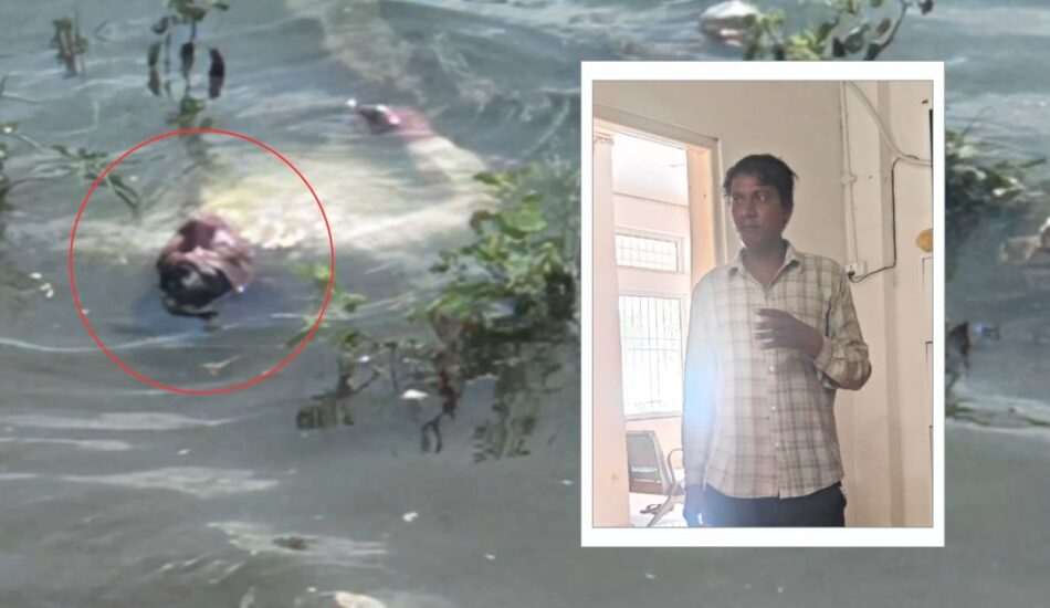 लाश की तरह पानी में 2 घंटे तक लेटा रहा टिंकू… मुर्दा समझती रही भीड़; पुलिस को देखकर भागा- Video